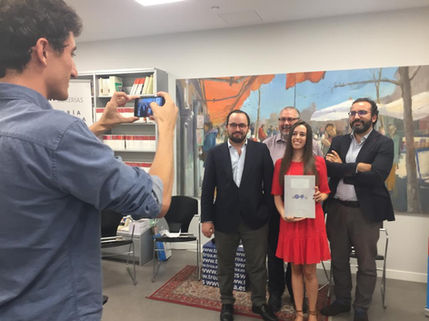 Ignacio Peyró (periodista y escritor), Pablo Velasco (editor), Antonio Malalana (profesor) y yo, ilustradora entusiasmada, durante la presentación.